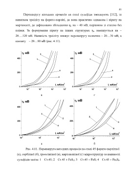 Перенапругу катодних процесів на сталі сульфіди зменшують [112], за