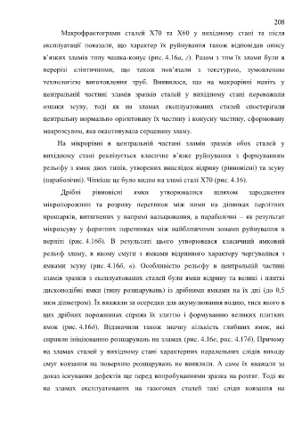(параболічні). Чіткіше це було видно на зламі сталі Х70 (рис. 4.16).