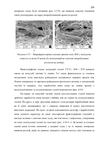 Рисунок 4.17 – Мікрофрактограми осьових зразків сталі Х60 у вихідному