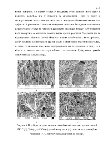 Рисунок 4.18 – Фрактограми зламів в околі бокової поверхні зразків сталей