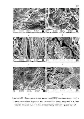 Рисунок 4.20 – Фрактограми зламів зразків сталі 17Г1С у вихідному стані (a, б) та