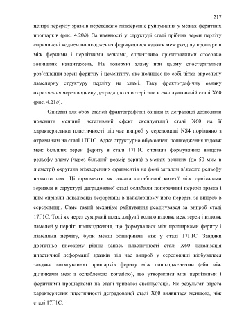 Описані для обох сталей фрактографічні ознаки їх деградації дозволили