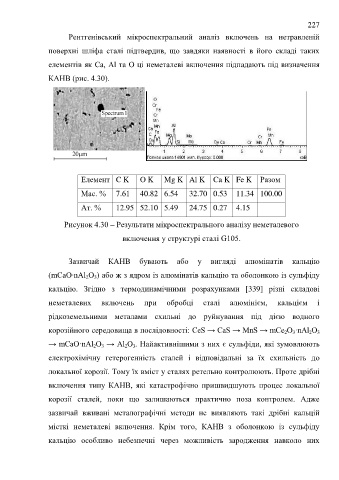 Рентгенівський мікроспектральний аналіз включень на нетравленій