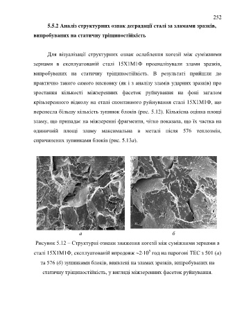 5.5.2 Аналіз структурних ознак деградації сталі за зламами зразків,