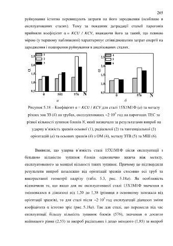 Рисунок 5.18 – Коефіцієнт α = KCU / KCV для сталі 15Х1М1Ф (a) та металу