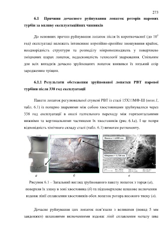 6.1.1 Результати обстеження зруйнованої лопатки РВТ парової