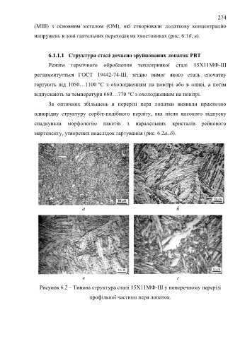 6.1.1.1 Структура сталі дочасно зруйнованих лопаток РВТ