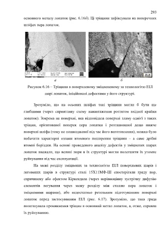 основного металу лопаток (рис. 6.16б). Ці тріщини зафіксували на поперечних