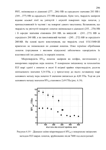 Мікротвердість НV лопаток заміряли на шліфах, виготовлених у