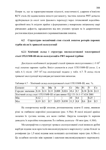 6.2 Структурно механічний стан сталей лопаток роторів парових
