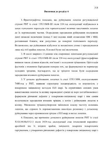 ступені РВТ із сталі 15Х11МФ-Ш після 338 год експлуатації фрактографічно