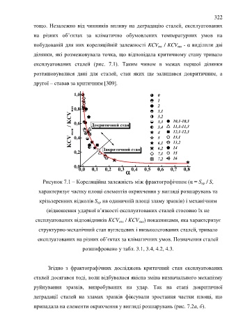 Рисунок 7.1 – Кореляційна залежність між фрактографічним (α = S / S,