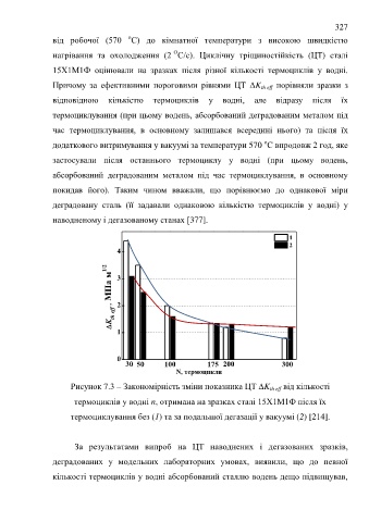 термоциклів у водні n, отримана на зразках сталі 15Х1М1Ф після їх