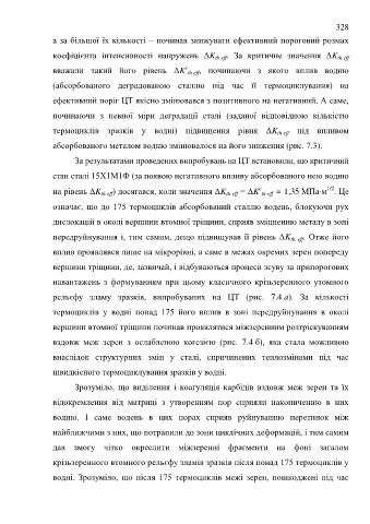 термоциклів зразків у водні) підвищення рівня ΔK th eff під впливом