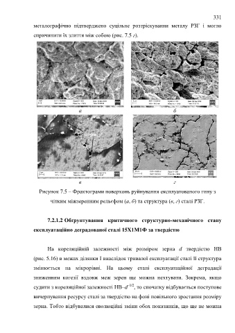 Рисунок 7.5 – Фрактограми поверхонь руйнування експлуатованого гину з