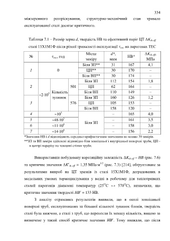 Таблиця 7.1 – Розмір зерна d, твердість НВ та ефективний поріг ЦТ ΔK th eff