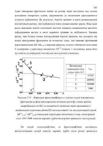 площі міжзеренних фрагментів на втомному зламі, тим нижчий ефективний