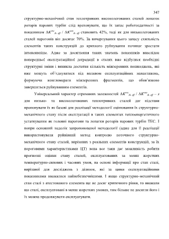 Універсальний характер отриманих залежностей ΔK екс th eff / ΔK вих th eff – s