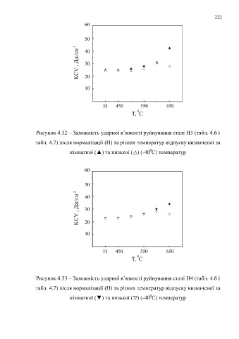 Рисунок 4.33 – Залежність ударної в’язкості руйнування сталі Н4 (табл. 4.6 і