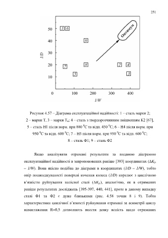 Рисунок 4.57 – Діаграма експлуатаційної надійності: 1 – сталь марки 2;