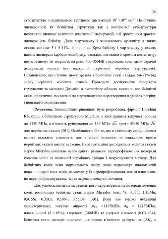коліс розроблена бейнітна сталь марки Micralos (мас. %: 0,35C; 1,10Mn;
