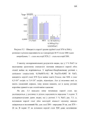швидкість корозії сталі Х70 була майже вдвічі більша, ніж Х80, а саме