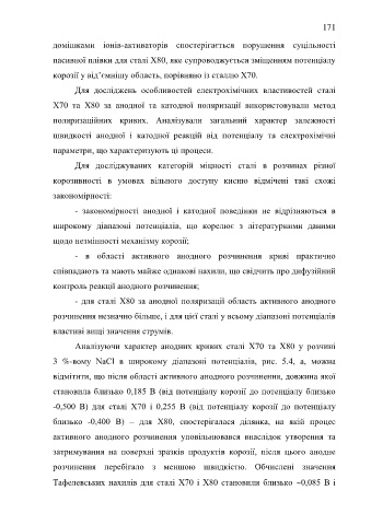 Тафелевських нахилів для сталі Х70 і Х80 становили близько 0,085 В і