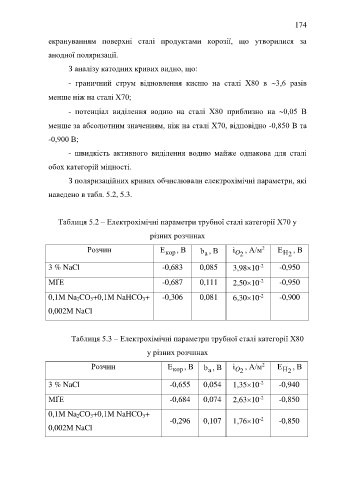 Таблиця 5.2 – Електрохімічні параметри трубної сталі категорії Х70 у