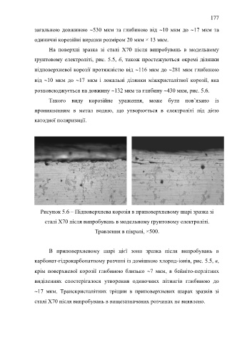 Рисунок 5.6 – Підповерхнева корозія в приповерхневому шарі зразка зі