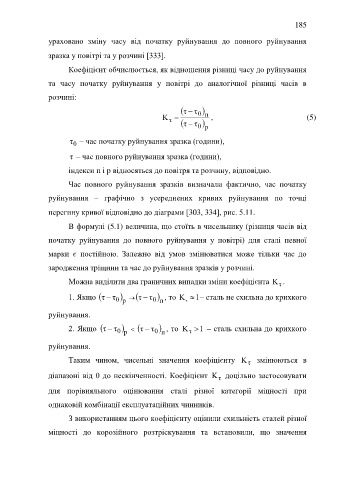 Коефіцієнт обчислюється, як відношення різниці часу до руйнування