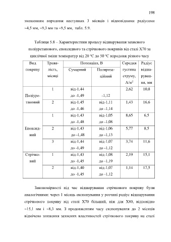 Таблиця 5.8 – Характеристики процесу відшарування захисного