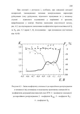 коефіцієнтів деградації властивостей сталі Х70: 1 – коефіцієнт схильності