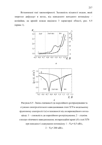 ґрунтовому електроліті (а) в залежності від поляризаційного потен-