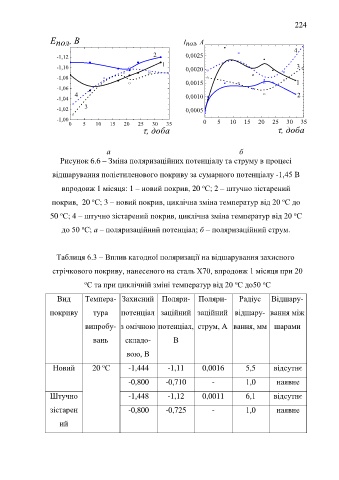 Таблиця 6.3 – Вплив катодної поляризації на відшарування захисного