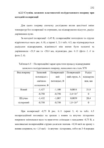Таблиця 6.5 – Поляризаційні характеристики процесу відшарування