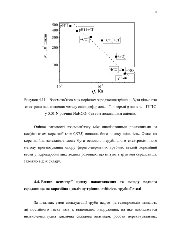 Рисунок 4.11 – Взаємозв’язок між періодом зародження тріщини N i та кількістю