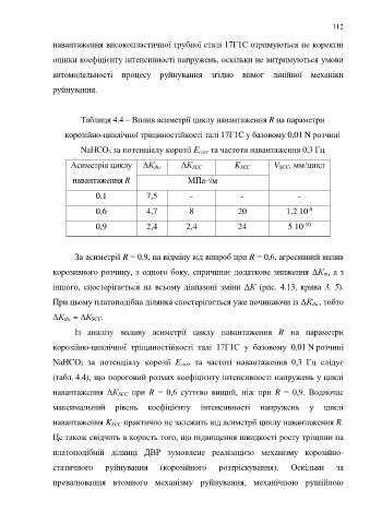 (табл. 4.4), що пороговий розмах коефіцієнту інтенсивності напружень у циклі