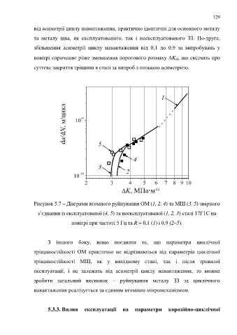 Рисунок 5.7 – Діаграми втомного руйнування ОМ (1, 2, 4) та МШ (3, 5) зварного
