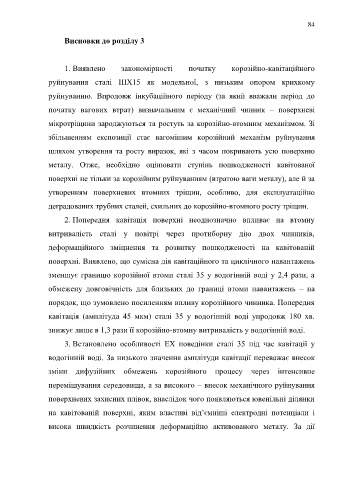 1. Виявлено закономірності початку корозійно-кавітаційного