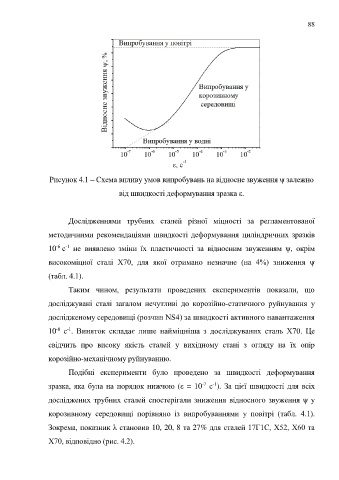Рисунок 4.1 – Схема впливу умов випробувань на відносне звуження ψ залежно