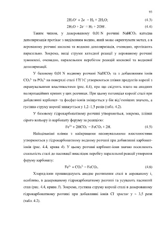 Fe + 2HCO 3 = FeСO 3 + 2Н. (4.5)