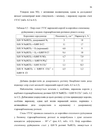 та 4.3). Добавляння хлорид-іонів до цього розчину суттєво пришвидшує корозію,