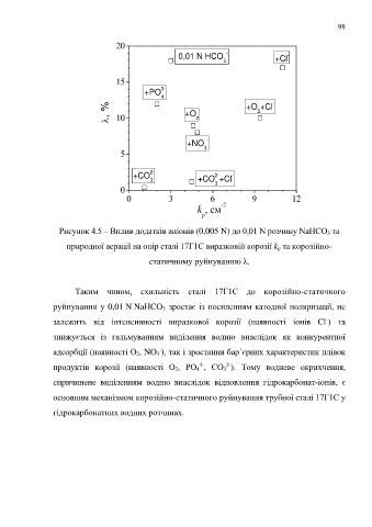 Рисунок 4.5 – Вплив додатків аніонів (0,005 N) до 0,01 N розчину NaHCO 3 та