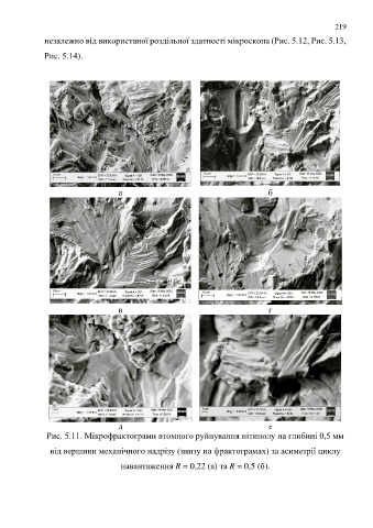 Рис. 5.11. Мікрофрактограми втомного руйнування нітинолу на глибині 0,5 мм
