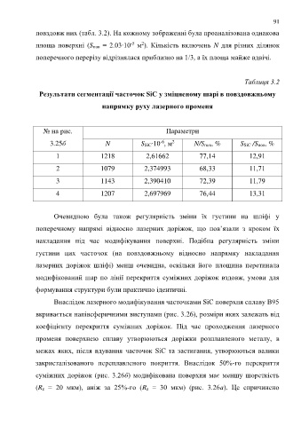 Результати сегментації часточок SiC у зміцненому шарі в повздовжньому