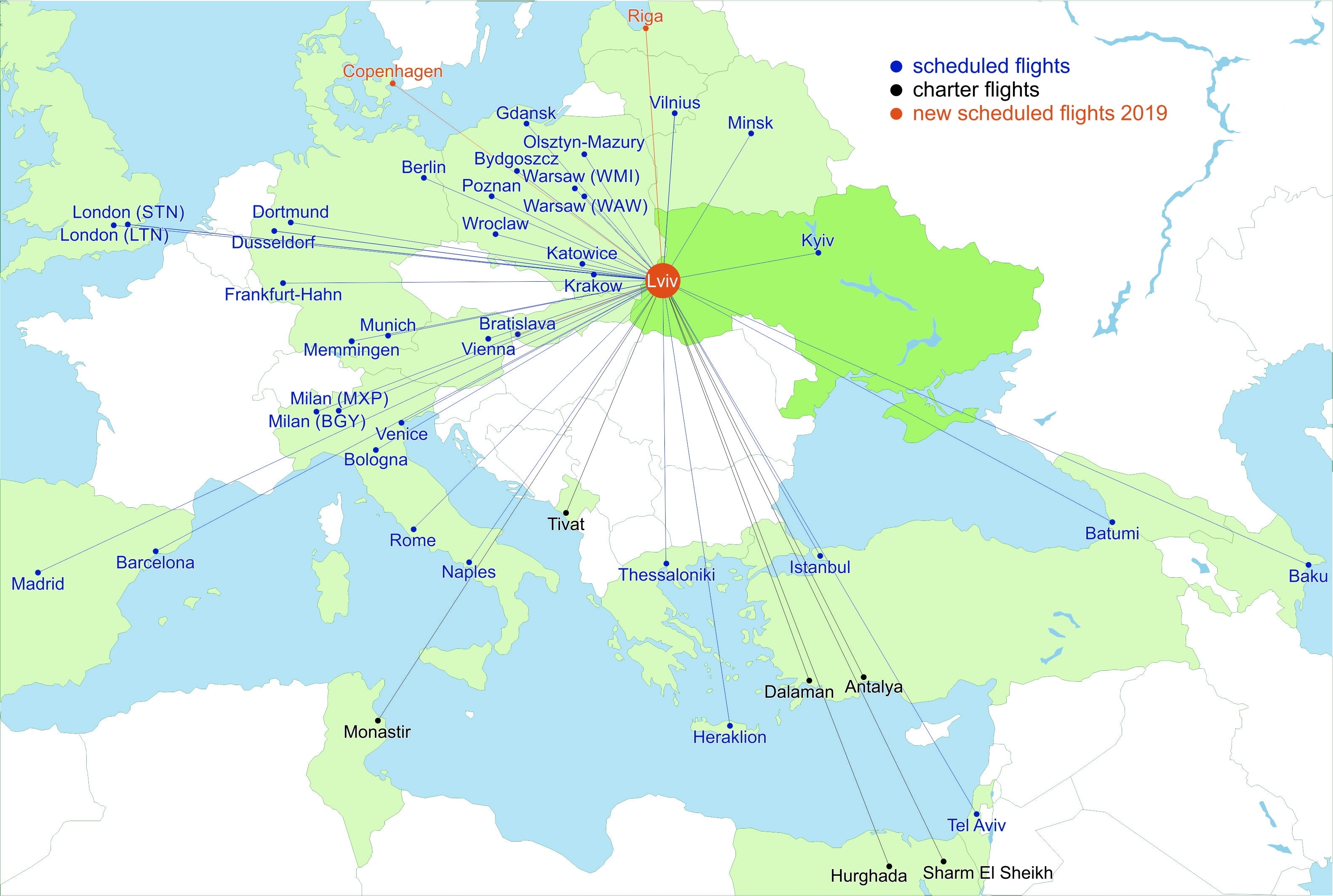 Danylo Halytskyi International Airport "Lviv" is situated only 6 km from the city center. It is the biggest airport in Western Ukraine according to passenger flow and destination network. The airport services more than 40 flight routes to 20 countries.