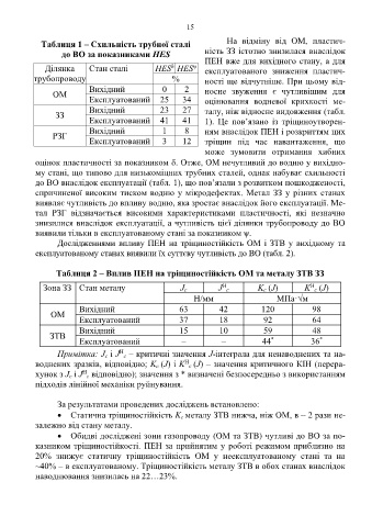 Таблиця 1 – Схильність трубної сталі На відміну від ОМ, пластич-