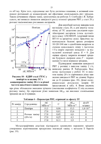 ського, які виявили зниження швидкості росту втомної тріщини РВТ у сталі 20 у