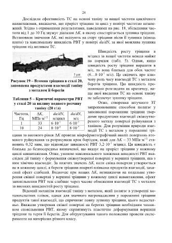 много руйнування та розрахували крок боріздок, який для ΔK ~ 33 MПa·м ста-