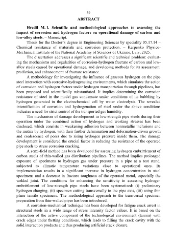ing the mechanisms and regularities of corrosion-hydrogen fracture of carbon and low-
